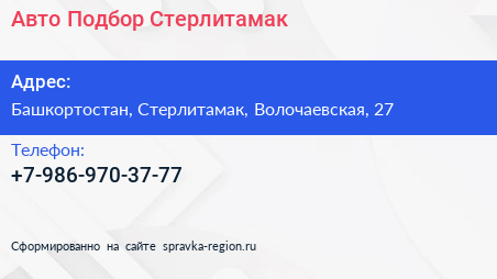 Авто-Подбор Стерлитамак по адресу Башкортостан, Стерлитамак, Волочаевская, 27 в дальнейшем Организация, размещена в следующих категориях: