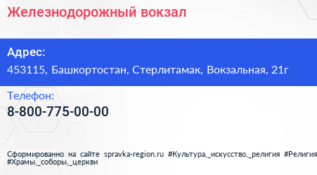 Железнодорожный вокзал по адресу 453115, Башкортостан, Стерлитамак, Вокзальная, 21г в дальнейшем Организация, размещена в следующих категориях: