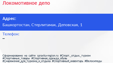 Локомотивное депо по адресу Башкортостан, Стерлитамак, Деповская, 1 в дальнейшем Организация, размещена в следующих категориях: