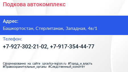 Подкова, автокомплекс по адресу Башкортостан, Стерлитамак, Западная, 4в/1 в дальнейшем Организация, размещена в следующих категориях: