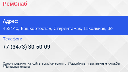РемСнаб по адресу 453140, Башкортостан, Стерлитамак, Школьная, 36 в дальнейшем Организация, размещена в следующих категориях: