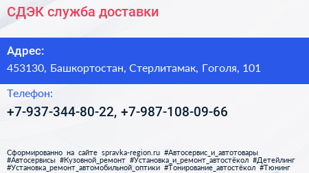 СДЭК, служба доставки по адресу 453130, Башкортостан, Стерлитамак, Гоголя, 101 в дальнейшем Организация, размещена в следующих категориях: