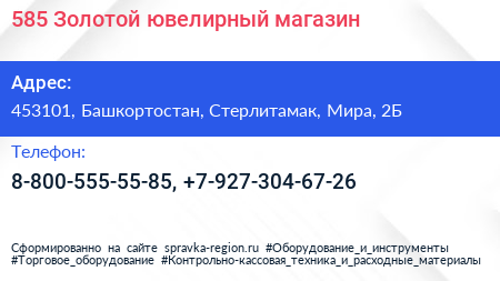 585 Золотой, ювелирный магазин по адресу 453101, Башкортостан, Стерлитамак, Мира, 2Б в дальнейшем Организация, размещена в следующих категориях: