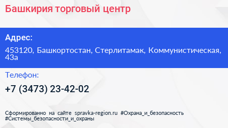 Башкирия, торговый центр по адресу 453120, Башкортостан, Стерлитамак, Коммунистическая, 43а в дальнейшем Организация, размещена в следующих категориях:
