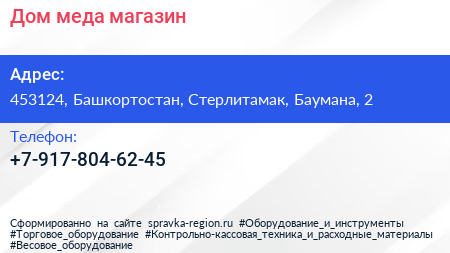 Дом меда, магазин по адресу 453124, Башкортостан, Стерлитамак, Баумана, 2 в дальнейшем Организация, размещена в следующих категориях:
