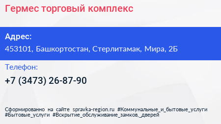 Гермес, торговый комплекс по адресу 453101, Башкортостан, Стерлитамак, Мира, 2Б в дальнейшем Организация, размещена в следующих категориях: