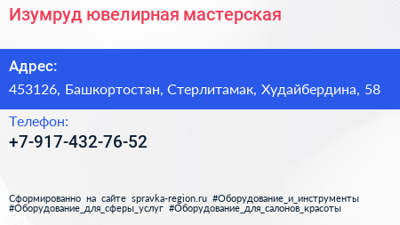 Изумруд, ювелирная мастерская по адресу 453126, Башкортостан, Стерлитамак, Худайбердина, 58 в дальнейшем Организация, размещена в следующих категориях: