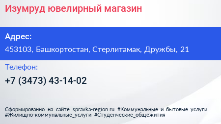 Изумруд, ювелирный магазин по адресу 453103, Башкортостан, Стерлитамак, Дружбы, 21 в дальнейшем Организация, размещена в следующих категориях: