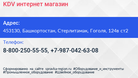 KDV, интернет-магазин по адресу 453130, Башкортостан, Стерлитамак, Гоголя, 124в ст2 в дальнейшем Организация, размещена в следующих категориях: