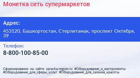 Монетка, сеть супермаркетов по адресу 453120, Башкортостан, Стерлитамак, проспект Октября, 39 в дальнейшем Организация, размещена в следующих категориях: