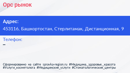 Орс, рынок по адресу 453116, Башкортостан, Стерлитамак, Дистанционная, 9 в дальнейшем Организация, размещена в следующих категориях: