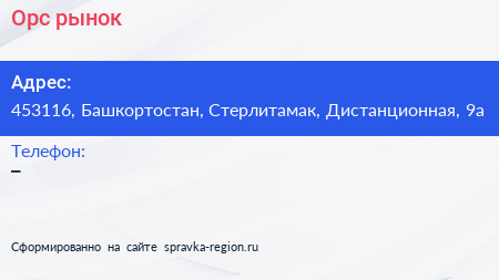 Орс, рынок по адресу 453116, Башкортостан, Стерлитамак, Дистанционная, 9а в дальнейшем Организация, размещена в следующих категориях: