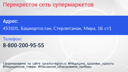 Перекресток, сеть супермаркетов по адресу 453101, Башкортостан, Стерлитамак, Мира, 1Б ст1 в дальнейшем Организация, размещена в следующих категориях: