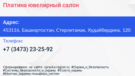 Платина, ювелирный салон по адресу 453116, Башкортостан, Стерлитамак, Худайбердина, 120 в дальнейшем Организация, размещена в следующих категориях: