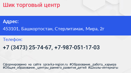 Шик, торговый центр по адресу 453101, Башкортостан, Стерлитамак, Мира, 2г в дальнейшем Организация, размещена в следующих категориях: