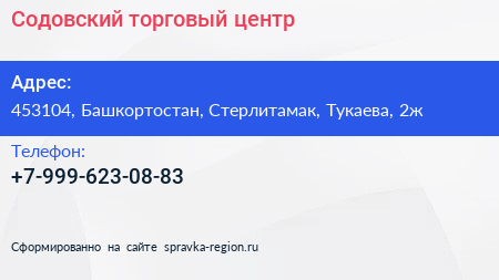 Содовский, торговый центр по адресу 453104, Башкортостан, Стерлитамак, Тукаева, 2ж в дальнейшем Организация, размещена в следующих категориях: