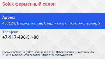 Solux, фирменный салон по адресу 453124, Башкортостан, Стерлитамак, Комсомольская, 5 в дальнейшем Организация, размещена в следующих категориях: