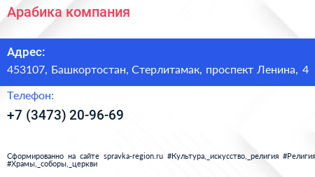Арабика, компания по адресу 453107, Башкортостан, Стерлитамак, проспект Ленина, 4 в дальнейшем Организация, размещена в следующих категориях: