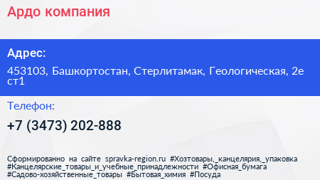 Ардо, компания по адресу 453103, Башкортостан, Стерлитамак, Геологическая, 2е ст1 в дальнейшем Организация, размещена в следующих категориях: