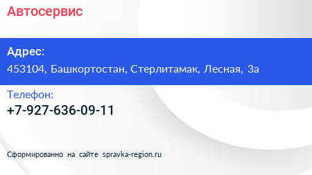 Автосервис по адресу 453104, Башкортостан, Стерлитамак, Лесная, 3а в дальнейшем Организация, размещена в следующих категориях: