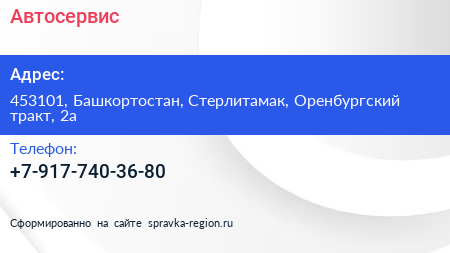 Автосервис по адресу 453101, Башкортостан, Стерлитамак, Оренбургский тракт, 2а в дальнейшем Организация, размещена в следующих категориях: