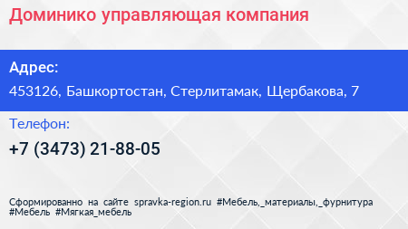 Доминико, управляющая компания по адресу 453126, Башкортостан, Стерлитамак, Щербакова, 7 в дальнейшем Организация, размещена в следующих категориях: