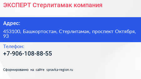 ЭКСПЕРТ-Стерлитамак, компания по адресу 453100, Башкортостан, Стерлитамак, проспект Октября, 93 в дальнейшем Организация, размещена в следующих категориях: