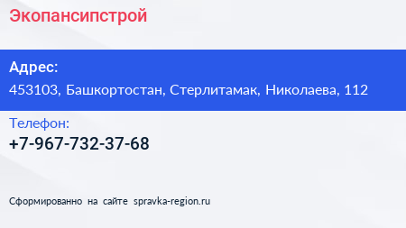 Экопансипстрой по адресу 453103, Башкортостан, Стерлитамак, Николаева, 112 в дальнейшем Организация, размещена в следующих категориях: