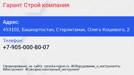 Гарант Строй, компания по адресу 453102, Башкортостан, Стерлитамак, Олега Кошевого, 2 в дальнейшем Организация, размещена в следующих категориях: