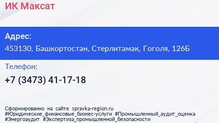 ИК Максат по адресу 453130, Башкортостан, Стерлитамак, Гоголя, 126Б в дальнейшем Организация, размещена в следующих категориях: