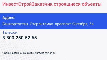 ИнвестСтройЗаказчик, строящиеся объекты по адресу Башкортостан, Стерлитамак, проспект Октября, 54 в дальнейшем Организация, размещена в следующих категориях:
