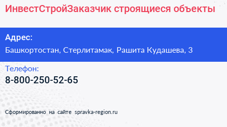 ИнвестСтройЗаказчик, строящиеся объекты по адресу Башкортостан, Стерлитамак, Рашита Кудашева, 3 в дальнейшем Организация, размещена в следующих категориях: