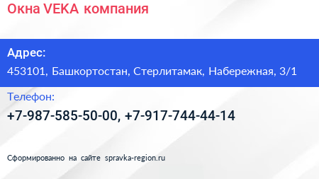 Окна VEKA, компания по адресу 453101, Башкортостан, Стерлитамак, Набережная, 3/1 в дальнейшем Организация, размещена в следующих категориях: