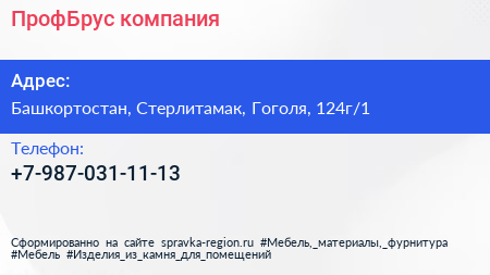 ПрофБрус, компания по адресу Башкортостан, Стерлитамак, Гоголя, 124г/1 в дальнейшем Организация, размещена в следующих категориях: