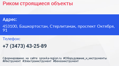 Риком, строящиеся объекты по адресу 453100, Башкортостан, Стерлитамак, проспект Октября, 91 в дальнейшем Организация, размещена в следующих категориях: