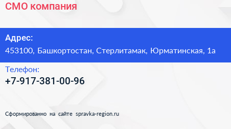 СМО, компания по адресу 453100, Башкортостан, Стерлитамак, Юрматинская, 1а в дальнейшем Организация, размещена в следующих категориях: