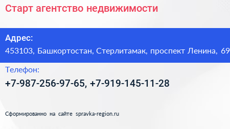Старт, агентство недвижимости по адресу 453103, Башкортостан, Стерлитамак, проспект Ленина, 69 в дальнейшем Организация, размещена в следующих категориях: