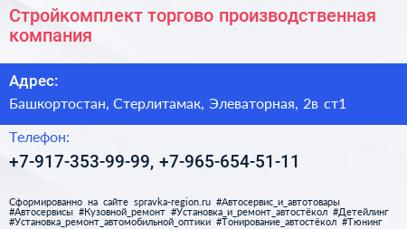 Стройкомплект, торгово-производственная компания по адресу Башкортостан, Стерлитамак, Элеваторная, 2в ст1 в дальнейшем Организация, размещена в следующих категориях: