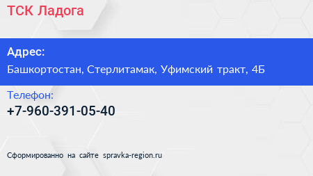 ТСК Ладога по адресу Башкортостан, Стерлитамак, Уфимский тракт, 4Б в дальнейшем Организация, размещена в следующих категориях: