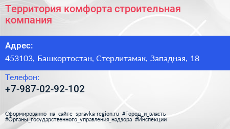 Территория комфорта, строительная компания по адресу 453103, Башкортостан, Стерлитамак, Западная, 18 в дальнейшем Организация, размещена в следующих категориях:
