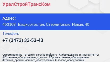 УралСтройТрансКом по адресу 453109, Башкортостан, Стерлитамак, Новая, 40 в дальнейшем Организация, размещена в следующих категориях: