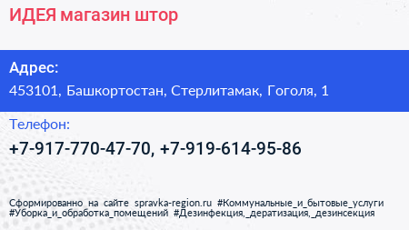 ИДЕЯ!, магазин штор по адресу 453101, Башкортостан, Стерлитамак, Гоголя, 1 в дальнейшем Организация, размещена в следующих категориях: