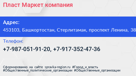 Пласт Маркет, компания по адресу 453103, Башкортостан, Стерлитамак, проспект Ленина, 38 в дальнейшем Организация, размещена в следующих категориях: