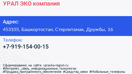 УРАЛ ЭКО, компания по адресу 453103, Башкортостан, Стерлитамак, Дружбы, 16 в дальнейшем Организация, размещена в следующих категориях: