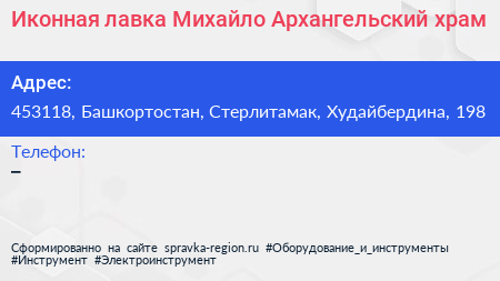 Иконная лавка, Михайло-Архангельский храм по адресу 453118, Башкортостан, Стерлитамак, Худайбердина, 198 в дальнейшем Организация, размещена в следующих категориях:
