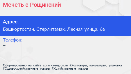 Мечеть, с. Рощинский по адресу Башкортостан, Стерлитамак, Лесная улица, 6а в дальнейшем Организация, размещена в следующих категориях: