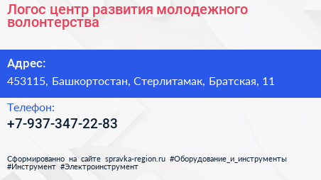 Логос, центр развития молодежного волонтерства по адресу 453115, Башкортостан, Стерлитамак, Братская, 11 в дальнейшем Организация, размещена в следующих категориях: