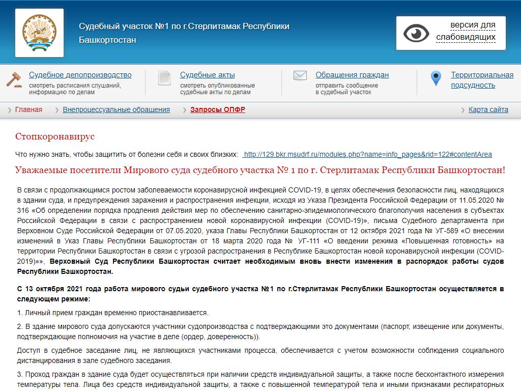 Мировые судьи г. Стерлитамака по адресу 453120, Башкортостан, Стерлитамак, Курчатова, 16 в дальнейшем Организация, размещена в следующих категориях: