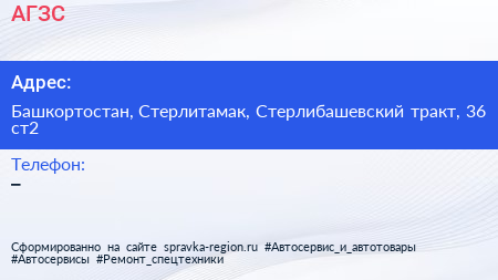 АГЗС по адресу Башкортостан, Стерлитамак, Стерлибашевский тракт, 36 ст2 в дальнейшем Организация, размещена в следующих категориях: