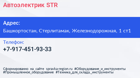 Автоэлектрик STR по адресу Башкортостан, Стерлитамак, Железнодорожная, 1 ст1 в дальнейшем Организация, размещена в следующих категориях: